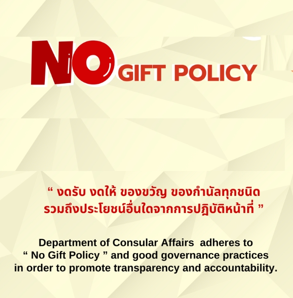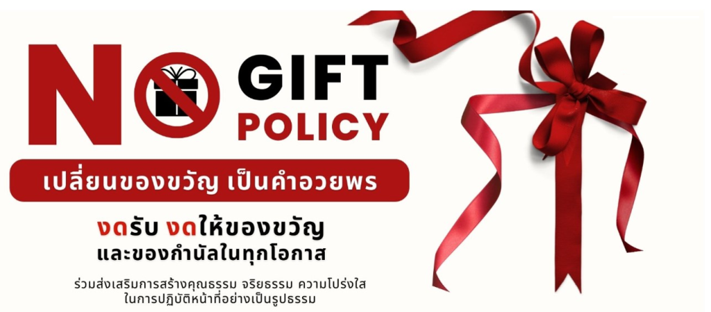 ประกาศเจตนารมณ์ การงดรับของขวัญและของกำนัล ตามนโยบาย No Gift Policy
