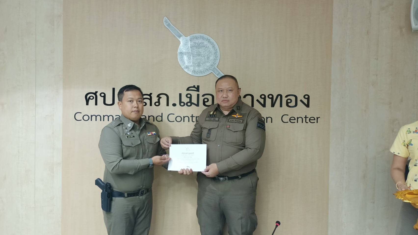 มอบใบประกาศ พร้อมดาวคุณธรรม ให้กับข้าราชการตำรวจ ที่ปฏิบัติหน้าที่ ณ ห้อง ศปก.สภ.เมืองอ่างทอง