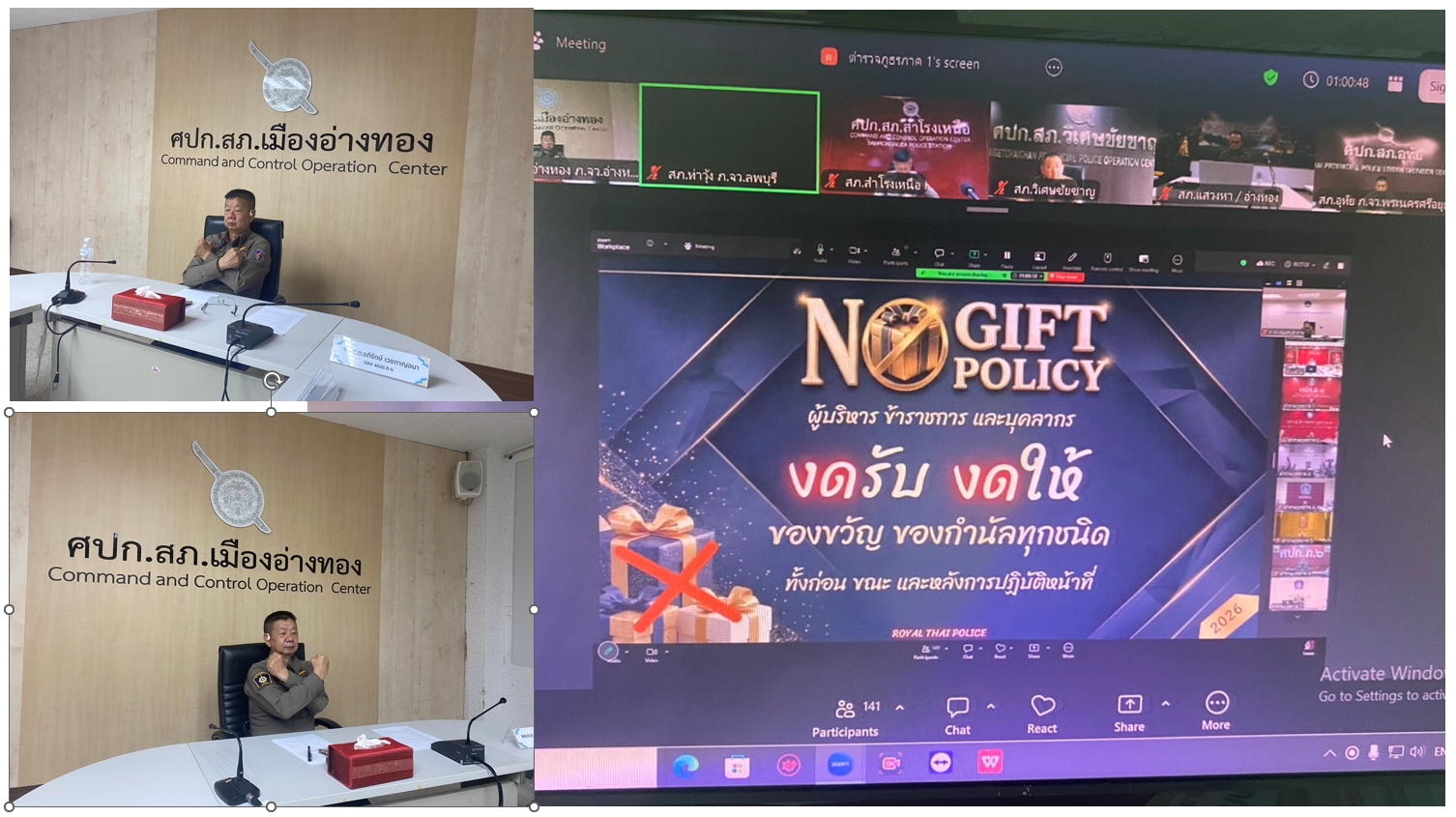เข้าร่วมประชุมบริหาร ตร. ครั้งที่ 2/2569 และร่วมประกาศเจตนารมณ์ No gift policy ผู้บริหาร ข้าราชการ และบุคลากร งดรับ งดให้ ของขวัญ ของกำนันทุกชนิด ทั้งก่อน ขณะ และหลังการปฏิบัติหน้าที่