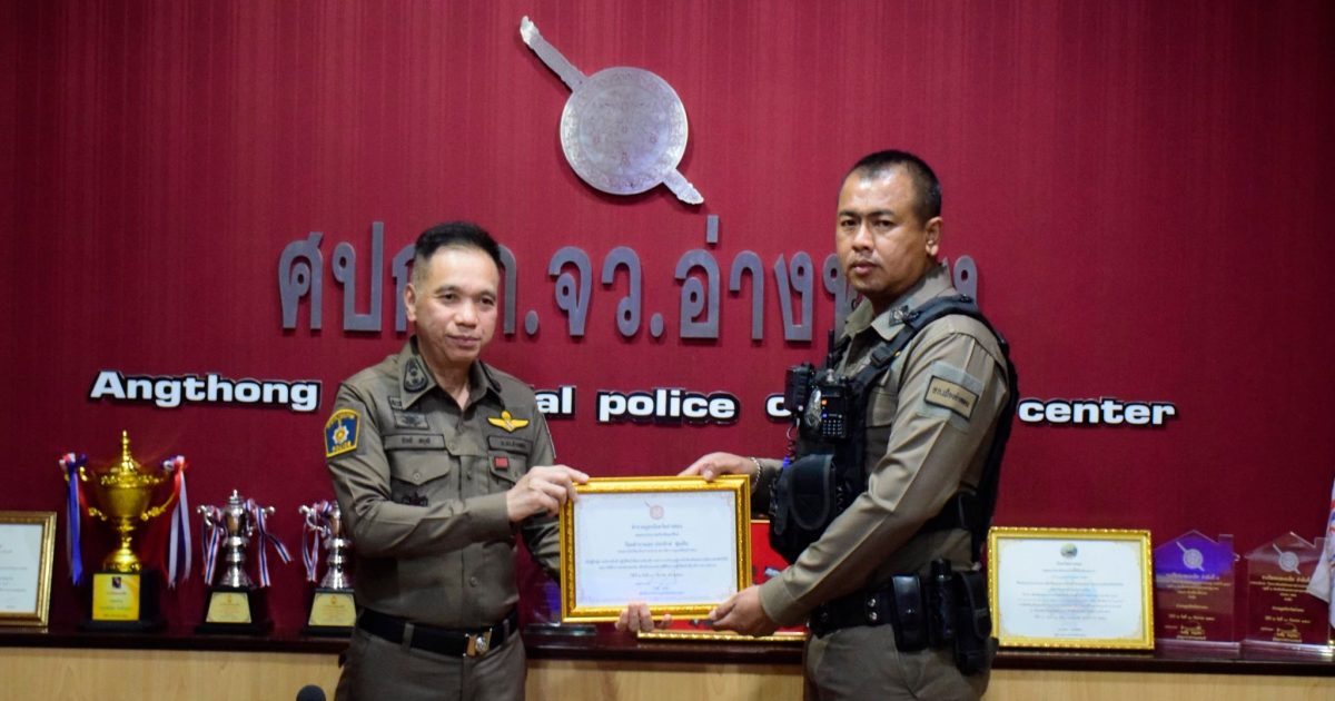 ข้าราชการตำรวจ สภ.เมืองอ่างทอง เข้ารับประกาศนียบัตร