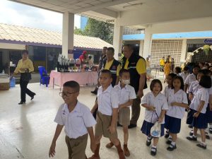 พร้อมด้วยข้าราชการตำรวจ สภ.เมืองอ่างทอง ร่วมกิจกรรมในโครงการดังกล่าว
