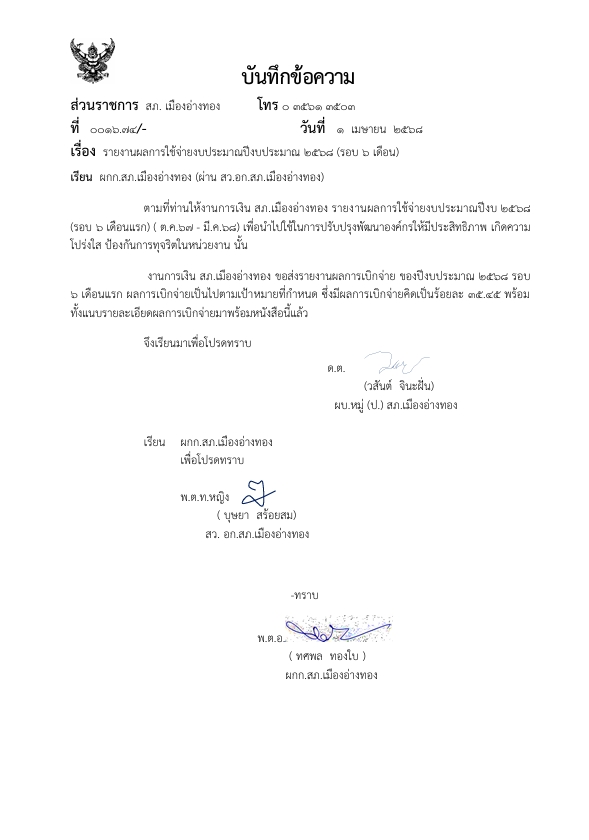 รายงานผลการใช้จ่ายงบประมาณ 2568