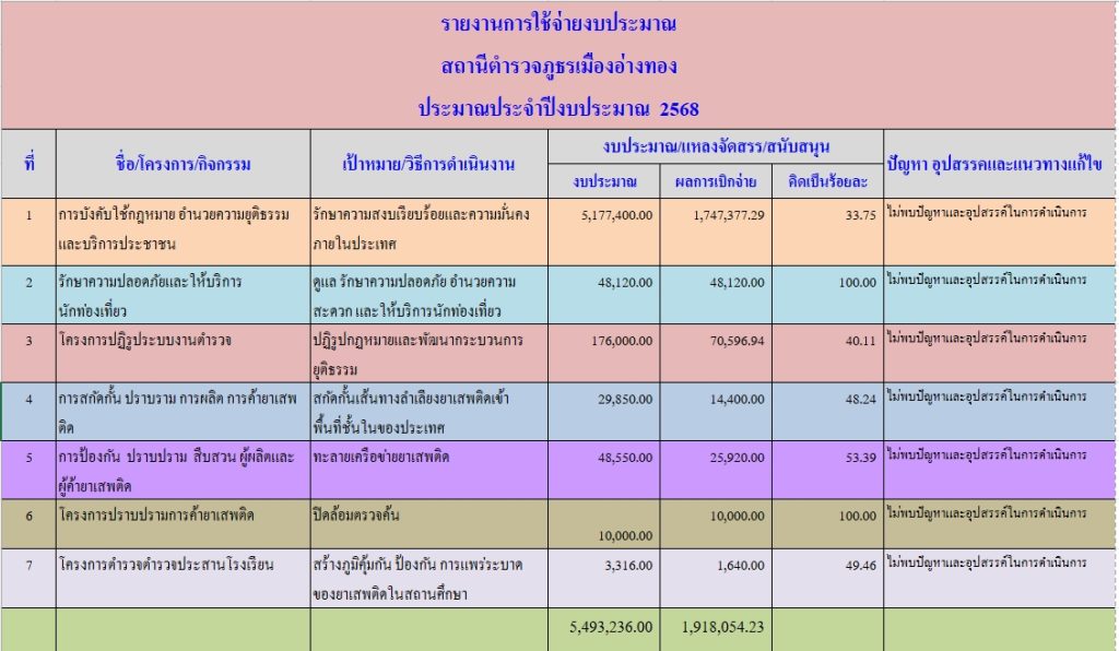 บันทึกรายงานผลการใช้จ่ายงบประมาณ ประจำปีงบประมาณ 2568 เสนอหัวหน้าสถานีตำรวจ
